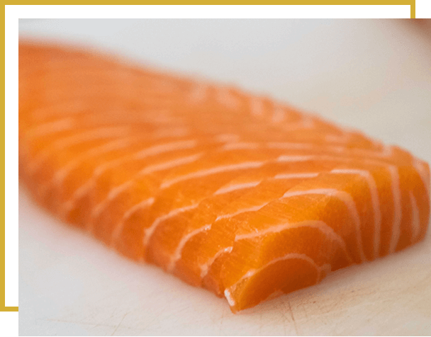 Plakjes rauwe vis gesneden als juwelen: dun, elegant, smeltend.